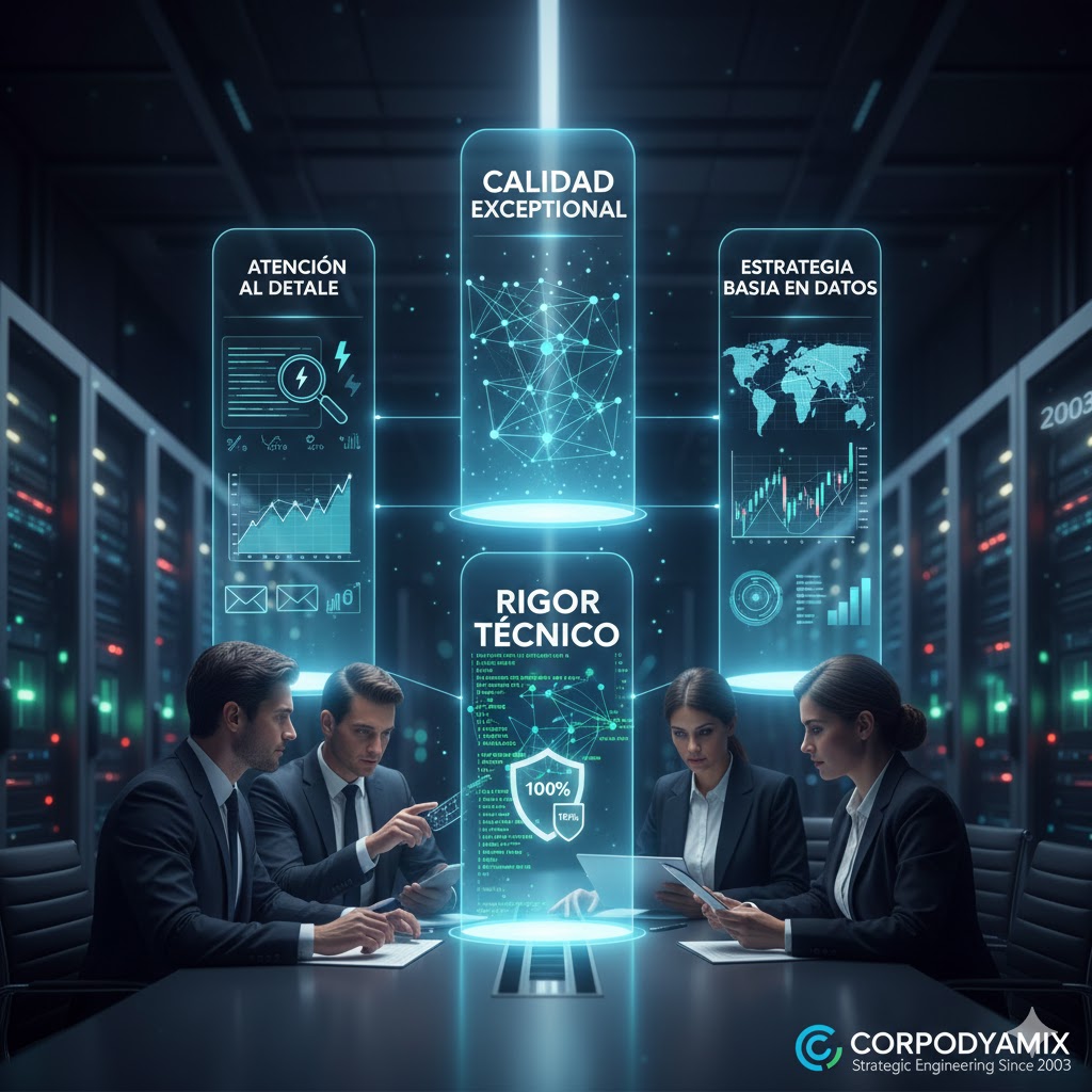 Rigor Técnico: Cada línea de código en nuestro desarrollo de software y cada segmentación en nuestras bases de datos pasa por filtros de auditoría interna. Si no es perfecto, no se entrega.